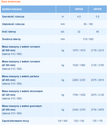 Głównym elementem konstrukcyjnym maszyny jest rama nośna, do której mocowane są dwa składane ramiona boczne. Do ramion bocznych mocowane są nośnice wyposażone w talerze uzębione (płaskie lub typ C) o średnicy 560 mm lub 510 mm z kątem natarcia talerzy 15°. Ponadto agregat wyposażony jest w ekrany boczne, które ograniczają odrzucanie gleby przez skrajne talerze sekcji przedniej i tylnej. Głębokość pracy agregatu ustalana jest poprzez regulację wału doprawiającego w zakresie od 6 cm do 16 cm.