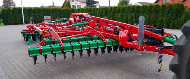 uprawie bezorkowej. Maszyna posiada cechy brony talerzowej oraz