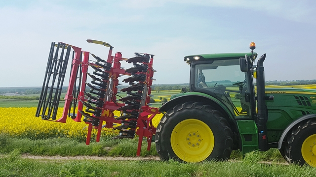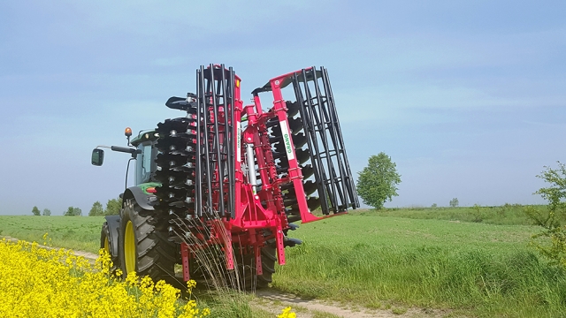 Jako pierwsza firma wprowadziliśmy na rynek bronę talerzową o szerokości roboczej od 4 do 6 metrów, która po złożeniu do pozycji transportowej posiada szerokość 2,42m !!!