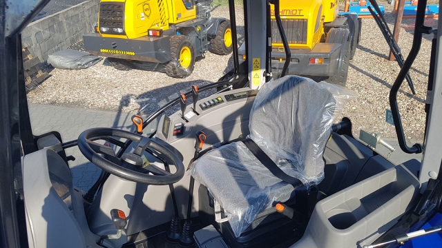 | – kabina: | klimatyzowana, panoramiczna, 4 słupkowa, komfortowa, z płaską podłogą, wentylowana, panel sterujący na błotniku, regulowana kolumna kierownicza, reflektory robocze przód i tył, wycieraczka szyby przód i tył, okno dachowe z szyberdachem, tylna szyba uchylna, drzwi boczne zamykane z kluczyka, lusterka boczne 2 szt. na teleskopach, radio z USB, lampa błyskowa, siedzenie Grammer |