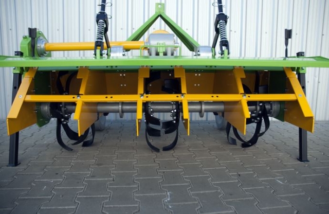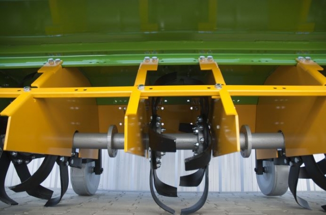 Maszyna ma zamontowane specjalne przegrody wewnętrzne oraz ekrany przednie, które mają zabezpieczyć rośliny przed uszkodzeniem przez wirujące noże, kamienie i rozdrabnianą glebę. Wyposażona jest w tradycyjną uchylną tylną klapę, która ogranicza wyrzut gleby i kamieni.