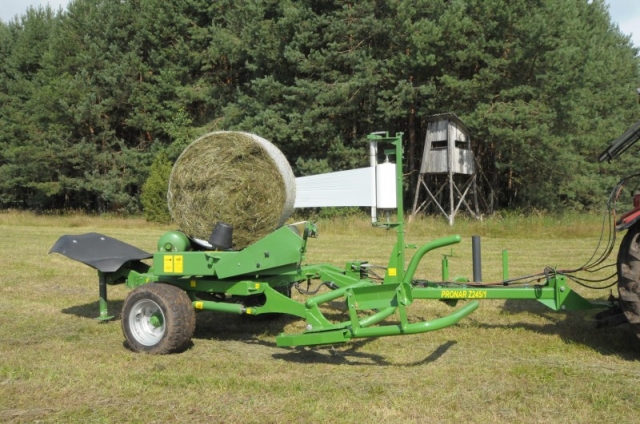 Owijarka PRONAR Z245/1 jest przeznaczona do gospodarstw o średniej i dużej powierzchni użytków zielonych. Ramię załadowcze umożliwia załadunek beli na stół owijarki bez konieczności zatrzymywania się, co eliminuje konieczność wykorzystania drugiego ciągnika. Standardowo wyposażona jest w hydrauliczny mechanizm odcinania folii poprzez który zyskujemy na czasie. Stół wyładowczy pozwala na wyładunek beli na dwa sposoby: belę możemy położyć lub postawić po czym wygodnie możemy załadować belę na przyczepę. Rozdzielacz hydrauliczny oraz licznik owinięć folią montowany jest w kabinie ciągnika dzięki któremu komfortowo kontrolujemy proces owijania.