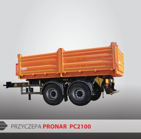 Przyczepa PRONAR PC2100 jest uniwersalną przyczepą do samochodów ciężarowych. Konstrukcja sprawia, że ta trójstronna wywrotka idealnie nadaje się do przewozu wielu rodzajów ładunków – np. piasku, żwiru, kamienia, węgla, gruzu, pasz, zboża, trocin czy śmieci. Skrzynia ładunkowa przystosowana jest do załadunku 12 palet typu euro, dodatkowo przewidziano uchwyty mocujące w podłodze, zapobiegające przemieszczaniu się ładunku w czasie transportu. Dzięki zastosowaniu specjalnego systemu otwierania poszczególnych burt: boczne otwierane są manualnie dźwignią na ścianie przedniej (prawa strona – uchylna, lewa – uchylna lub otwierana na boki), tylna otwierana jest automatycznie w momencie wywrotu; sprzęt jest bardzo łatwy w obsłudze, co pozwala na szybki i skuteczny załadunek praktycznie bez dodatkowej ingerencji operatora.