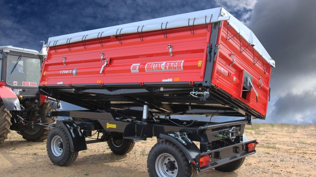 Przyczepy dwuosiowe serii T710 to produkty dedykowane dla rolnictwa. Występują w dwóch wersjach: jako urządzenie 6 tonowe i 8 tonowe. Przyczepy wyróżnia trwałość. Przestrzenie zamknięte profili ścian zostały zabezpieczone spoiną ciągłą. Wszystkie elementy skorupy zostały pokryte farbą chemoutwardzalną dwuskładnikową odznaczającą się wysoką trwałością i odpornością na czynnik UV. Ściany przyczepy są dodatkowo wyposażone w linki spinające. Sprzęt charakteryzuje się lekką, solidną konstrukcją opartą w większości na profilach zamkniętych. Przyczepa posiada trójstronny wyładunek. Dla bezpieczeństwa ściany są ryglowane centralnie. Standardowo przyczepy są wyposażone w oczko zaczepu fi40mm oraz dyszel typu V. Za dopłatą, możliwe jest zainstalowanie oczka fi50mm. Skrzynia ładunkowa posiada uniwersalny system otwierania ścian. W obrębie tylnej ściany zamontowano szyber zsypowy do ziarna, dodatkowo wyposażony w blokadę. Przyczepa posiada tylne wyjście hydrauliki i hamulców, dzięki czemu można do niej podłączyć kolejną przyczepę. Tylny zaczep manualny występuje w wersji sztywnej. Model T710 cechuje się instalacją hamulcową pneumatyczną jedno lub dwuprzewodową. Dodatkowo, na życzenie klienta istnieje możliwość zamontowania instalacji hamulcowej pneumatycznej, hydraulicznej. Opcjonalnie, przyczepy mogą być doposażone w nadstawkę pełną lub siatkową, plandekę ze stelażem oraz pomost roboczy a także kosz na koło zapasowe lub kosz z wyciągarką. Standardowo przyczepa posiada dyszel typu V, który można zamienić na wersję V lubY wydłużoną.
