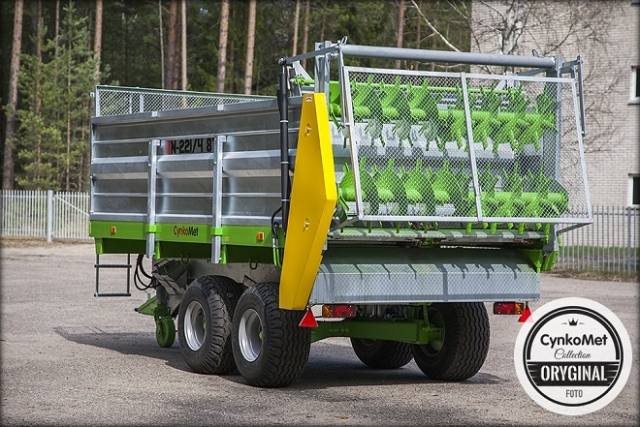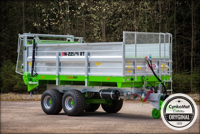 Rozrzutnik typu Tandem N-221 8T to maszyna najczęściej wybierana przez rolników ceniących sobie wysoką wydajność pracy. Cynkowana ogniowo konstrukcja, podłoga prosta o grubości 3mm, gwarantuje niezawodność, trwałość przez wiele lat użytkowania. Do produkcji elementów przenośnika i adaptera zastosowano tylko wysokogatunkową stal co gwarantuje najwyższą jakość i bezawaryjność. Zastosowane zawieszenia typu tandem wykonanym na resorach stalowych lub wahaczach gwarantuje najbardziej optymalne przeniesienie ciężaru na podłoże eliminując nadmierne koleinowanie. Hydraulicznie unoszona ściana grodziowa, oddziela ładunek w skrzyni ładunkowej od adaptera rozrzutnika.  Po zastosowaniu dodatkowych nadstaw z tylną klapą hydrauliczną, pojemność skrzyni ładunkowej zwiększa się do 17m3 co jest niespotykane na rynku w tej klasie ładowności i umożliwia wykorzystanie rozrzutnika jako wysokowydajnej samowyładowczej przyczepy objętościowej. Wszystkie rozrzutniki posiadają nowe kompletne koła.
