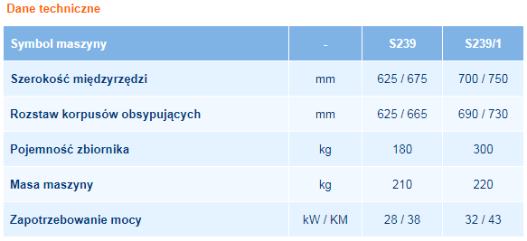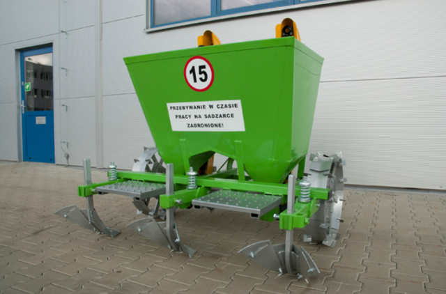 Ziemniaki mogą być wysadzane w międzyrzędziach 62,5 / 67,5 cm lub 70 / 75 cm przy zmiennej odległości sadzeniaków w rzędzie (29 cm, 32 cm 35 cm) w przypadku kół metalowych oraz przy stałej odległości 32 cm w przypadku kół gumowych.