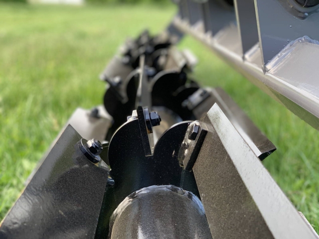 Wał nożowy o średnicy fi 380 mm może być montowany bezpośrednio przed broną talerzową lub na TURze ciągnika. Zbudowany jest z sześciu segmentów, na których zamontowane są noże tnące wykonane z 8 mm hardoxu. Jego głównym zadaniem jest pocięcie słomy i resztek pożniwnych. Jest również idealny narzędziem do walki z omacnicą prosowianką.