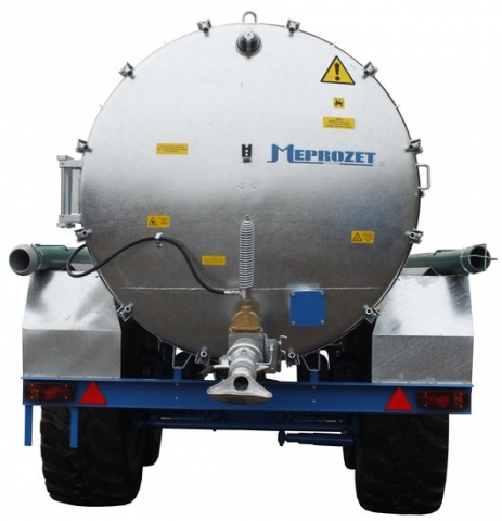 Na tylnym włazie zamontowana jest hydraulicznie sterowana zasuwa z uchylną łyżką rozlewową a na boku zbiornika zasuwa ręczna 5”. Na dnie zbiornika znajduje się króciec 2′ umożliwiający podłączenie dodatkowego węża spustowego np. do podlewania.