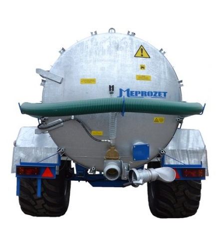 Na tylnym włazie zamontowana jest hydraulicznie sterowana zasuwa z uchylną łyżką rozlewową a na boku zbiornika zasuwa ręczna 5”. Na dnie zbiornika znajduje się króciec 2′ umożliwiający podłączenie dodatkowego węża spustowego np. do podlewania.
