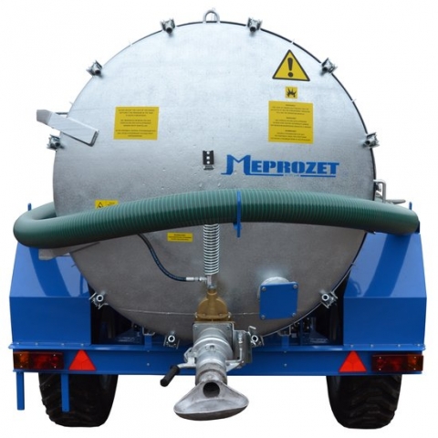 Na tylnym włazie zamontowana jest hydraulicznie sterowana zasuwa z uchylną łyżką rozlewową a na boku zbiornika zasuwa ręczna 5”. Na dnie zbiornika znajduje się króciec 2′ umożliwiający podłączenie dodatkowego węża spustowego np. do podlewania.