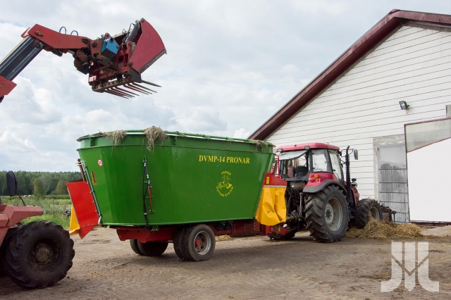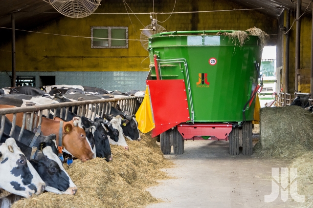 Wóz paszowy PRONAR DVMP T – 12/14/16/18 to seria wozów paszowych, która opiera się na sprawdzonej konstrukcji wozów paszowych DVMP T wzbogaconej o taśmę wyładowczą. Wprowadzenie nowych technologii w żywieniu krów (TMR – dawka całkowicie wymieszana; PMR – dawka częściowo wymieszana) wpłynęło w dużym stopniu na wzrost ich wydajności mlecznej, poprzez optymalne wykorzystanie składników pokarmowych pasz. Wóz paszowy PRONAR DVMP T – 12/14/16/18 zapewnia właściwe przygotowanie i zadawanie pełnoporcjowej dawki żywieniowej .